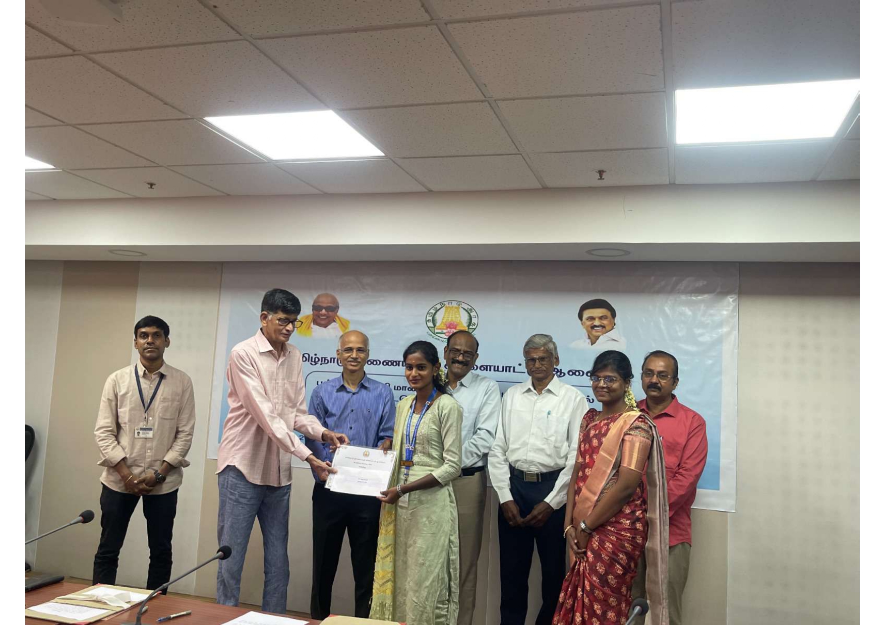 Tamil Nadu Online Gaming Authority distributed certificates along with cash prizes to the 1st, 2nd, and 3rd prize winners of the Essay Competition for School and College Students.